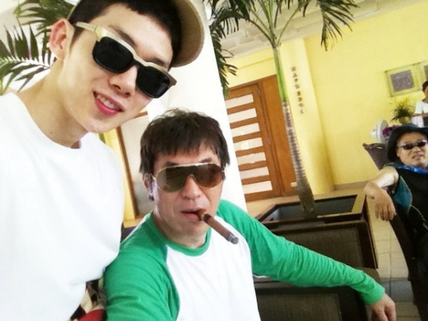 “國民男友”Yun Du-jun看上去有些疲憊,而帶戴上墨鏡嘴里還叼著雪茄的金甲洙,散發出男性魅力。